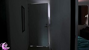 busty beauty teases her big nipples on camera while parents sleep nearby