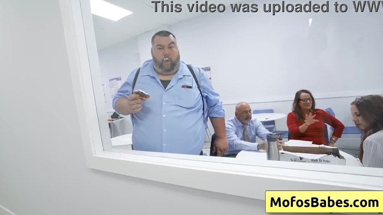 Busty brunette office milf Sasha Pearl sucks Parker Ambrose's huge dick intensely.