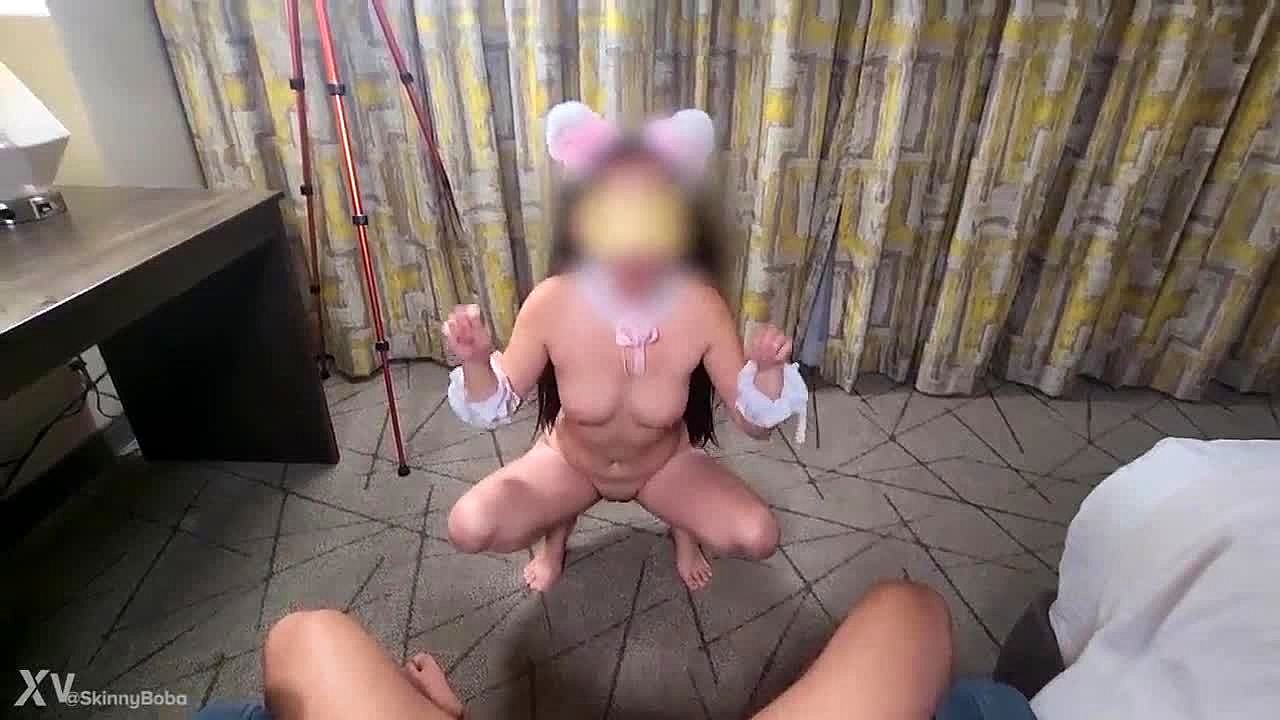 Reality or bad dream? Can this petite asian teen handle a double dick monster cock blowjob with cumshot?